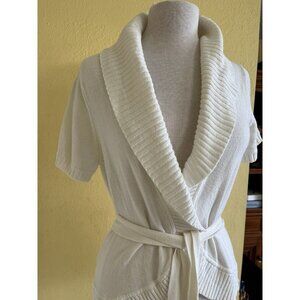 New without tags. BCBG MAX AZRIA Short Sleeve Summer Spring Knit Cardigan Sweater Top Size M Ivory. Ties at front with attached belt, super cute for Summer and Spring. Cotton blend hand wash only, stretch in fabric.