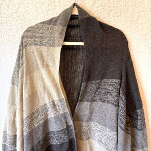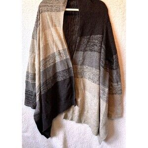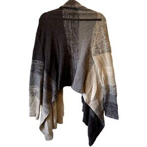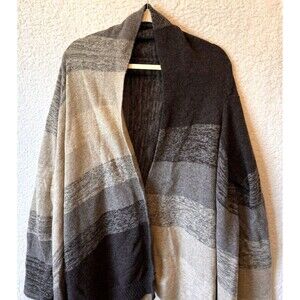 BCBG MAX AZRIA Women Cardigan Sweater Sz L Open Front Wool Blend Tan Black