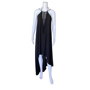 BCBG MAX AZRIA Womens Size XXS Black Asymmetric Hi Lo Danita Fringe Halter Dress