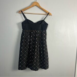 BCBG MAX AZRIA black 100% silk satin babydoll sun dress puff skirt eyelet dots 2