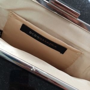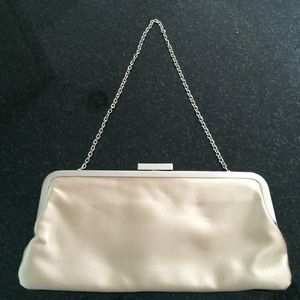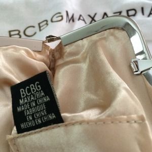 BCBG MAXAZARIA Evening Bag. Chain Strap. Pocket inside. Pinkish / cream satin. Comes w protective bag. Used once for wedding. No flaws, stains, no pulls. Like new!