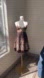 Cotton and silk blend, mini/midi, dress with v neckline, adjustable straps, back zipper, embroidered stitching, tulle lining. Fitted bust, then flares out.