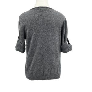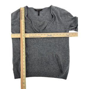 BCBG MAXAZRIA 100% lambswool GRay V-NECK SHORT SLEEVE 2 POCKETS ZIP SWEATER L