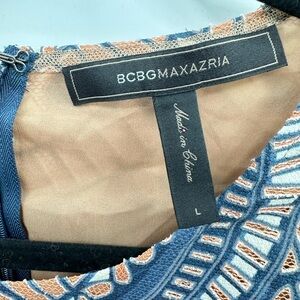 BCBG MAXAZRIA Alina woman cotton 70's bohemian hippie mini blue shift dress L