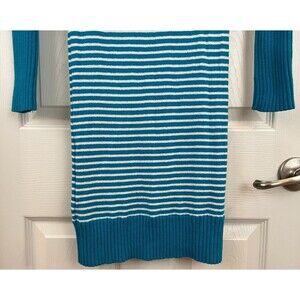 BCBG MAXAZRIA - Aqua & White Stripe Long Sleeve Cowl Neck Sweater Dress size XS