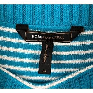 BCBG MAXAZRIA - Blue & White Stripe Long Sleeve Cowl Neck Sweater Dress size XS