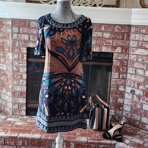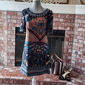 A Darling Vintage Style BCBG Dress. I Love The Colors Of This Dress. The Rust, Black, and Turquoise are gorgeous!!
