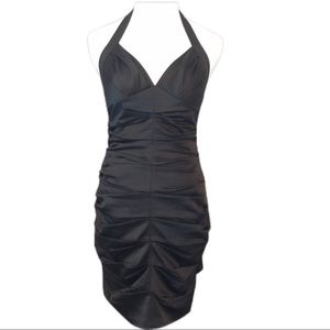 -BCBG MAXAZRIA Black Ruched Halter Dress