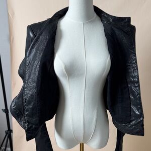 BCBG Sleek and stylish black leather jacket for women. Perfect for adding a touch of elegance to any outfit.