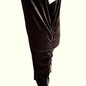 BCBG MAXAZRIA Bodycon side ruched chocolate brown Velvet Dress Sz L