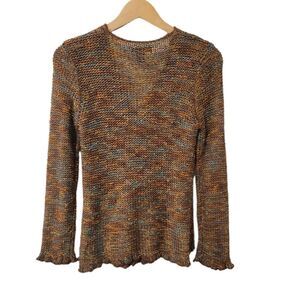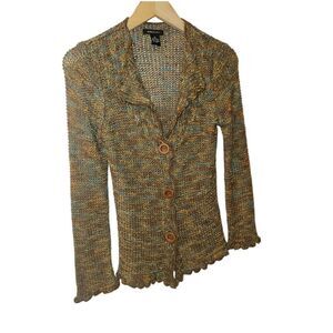 BCBG MAXAZRIA Brown Burnt Orange Chunky Nubby Open Knit Cardigan Sweater M