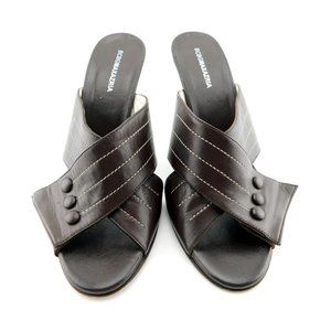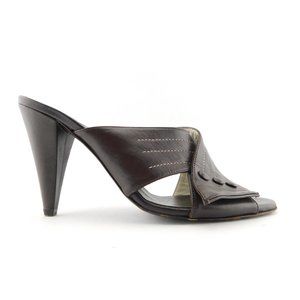 Brown Leather Criss Cross Slide Corn Heel Sandals