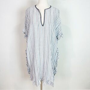 BCBG MAXAZRIA DOVE BLUE WHITE STRIPE RUFFLE EDGE CAFTAN DRESS WOMENS XS/SMALL