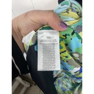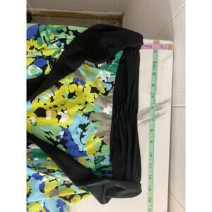 Elevate your wardrobe with the BCBG MAXAZRIA Faux Wrap Dress, a versatile piece that transitions effortlessly from daytime to evening. Designed in a flattering mid-calf length, this dress features a vibrant multi-color floral pattern that captures the essence of spring and summer. The faux wrap style lends an elegant and slimming silhouette, complemented by pleated accents and a belted waist. It has pockets! Size XL 94% Polyester 6% Spandex