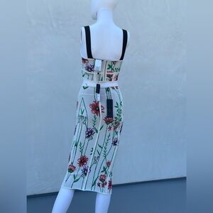Beautiful Floral Design, Black Stretch Straps, Exposed Back Zipper, Bustier Style and Crop Style. This is for Bustier only.
