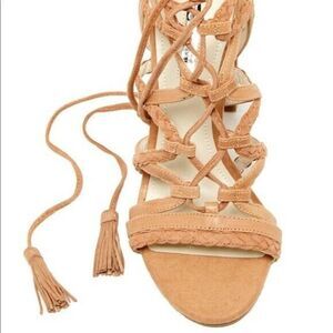 BCBG MAXAZRIA Heels Brown trappy Suede Leather Strap Shoes Size 8