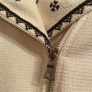 BCBG MAXAZRIA designer jacket in offwhite with dark blue/black detail pattern