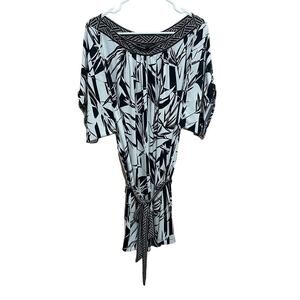 BCBG MAXAZRIA MAE SHEATH ABOVE KNEE DRESS TROPICAL BLACK WHITE ELEGANT COCKTAIL