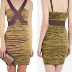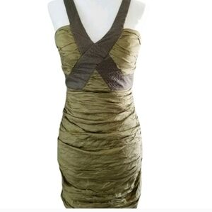 BCBG MAXAZRIA OLIVE TAFFETA SIMSOM DRESS SZ 6