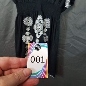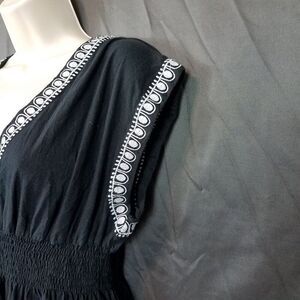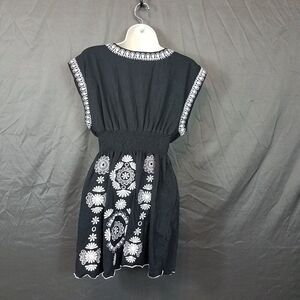 BCBG MAXAZRIA Peasant Boho Cotton Tunic Dress Black White Embroidered Size Small