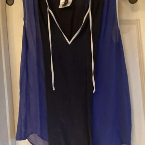 BCBG MAXAZRIA ROYAL BLUE COMBO LULA COLOR BLOCKED BLOUSE TOP SZ XXS