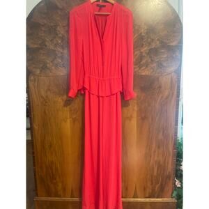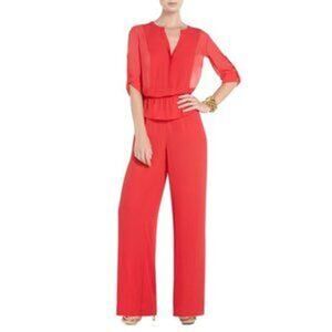 BCBG MAXAZRIA Rigsby Wide Leg Flowy Jumpsuit in Berry Red Size XXS Silky