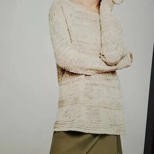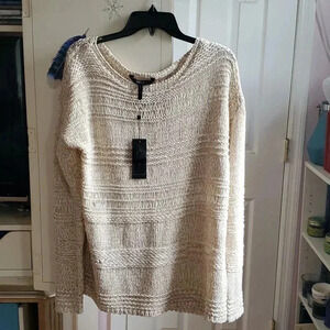 BCBG MAXAZRIA MIXED STITCH SWEATER PLASTER COMBO SIZE L