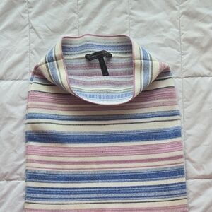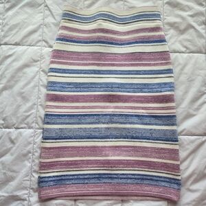 Elevate your style with this chic striped skirt. Featuring a blend of pink, blue, and cream hues, it's perfect for any occasion.🚨tiny stain on the back and front very hard to see it🚨