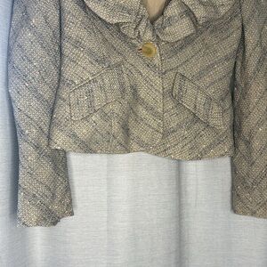 BCBG MAXAZRIA TWEED/WOOL RUFFLE COLLAR BLAZER (M)