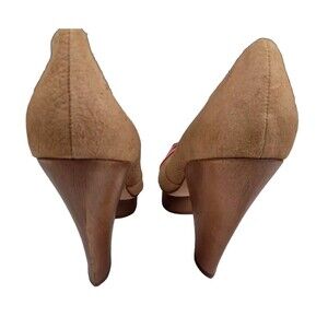 BCBG MAXAZRIA Tan & Orange Leather Platform Heel Pumps Size US 9.5 B Wooden