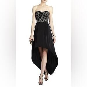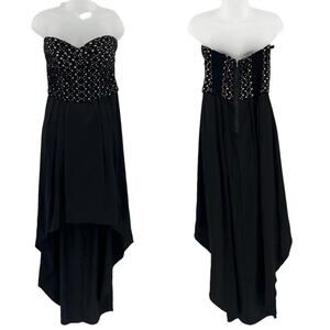 BCBG MAXAZRIA Tess Black Nude Midi High Low Hem Strapless Corset Top Size 12