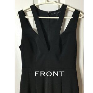 BCBG Maxazria wide leg black jumpsuit (pants) with POCKETS. Size SMALL. Pay attention to the front, back and shoulder design. Zipper in the back. Every woman needs one dressy to casual jumpsuit that works with any occasion. Wear with or without a shirt/blouse. Wear this to work paired with a tuxedo blazer. Wear with heels, boots, sandals or sneakers easily dressed up or down