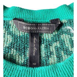 BCBG MAXAZRIA Woman's Sz XS Jaxin Emerald Green Leopard Cheetah Print Sweater