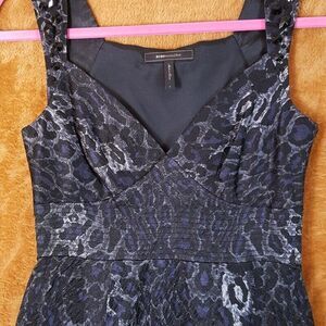 BCBG MAXAZRIA Womens Dress Size 0 Black Blue Silver Sheath Leopard Cocktail Condition: Really great used condition with normal wear and no flaws. Measurements included in photos.