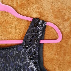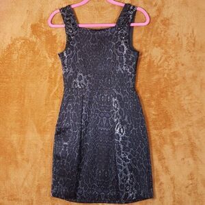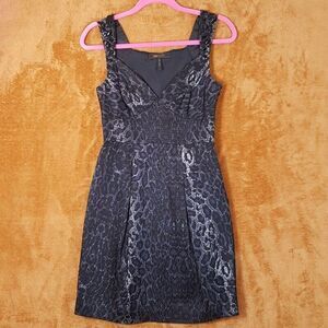 BCBG MAXAZRIA Womens Dress Size 0 Black Blue Silver Sheath Leopard Cocktail