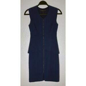 BCBG MAXAZRIA Women's Ellen Dress Navy Blue Sleeveless Peplum Front Zipper