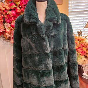 Gorgeous BCBG MAXAZRIA Womens Emerald Faux Fur Coat Jacket