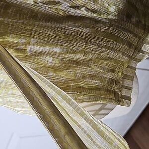 There is no fabric tag, but the fabric is so lovely, and I believe that it is silk. the color is greenish yellow. Excellent condition and quality.