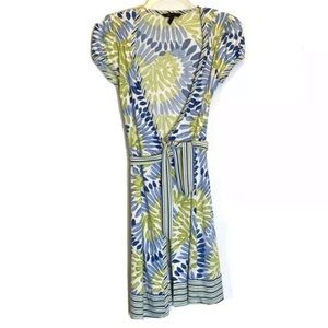 BCBG MAXAZRIA XS Wrap Dress Blue Green White Watercolor-Inspired Floral Stripes. Condition is Pre-owned. Shipped with USPS Priority Mail. Beautiful dress to wear for any occasion. Career, Dressy,Professional, Casual, or Work.
