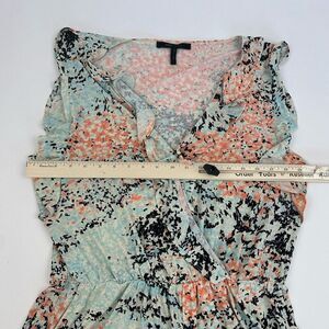 BCBG MAXAZRIA Wrap Front Romper Multcolor Ruffle Elastic Waist Sz L Stretch