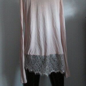 BCBG Maxazria IANA bare pink 100% rayon delicate lace trim tunic top.