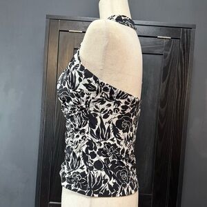 Pre-loved. Elevate your wardrobe with this stunning black and white floral halter top from BCBG MAXAZRIA!