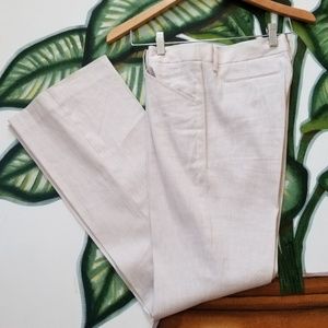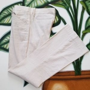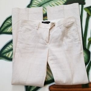 BCBG MAXAZRIA Linen lowrise lightweight a little sheer Pants. Features two Hand pockets, two faux back pockets, Zip front with button and hook closure.