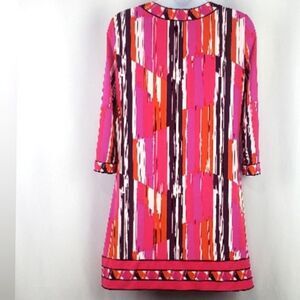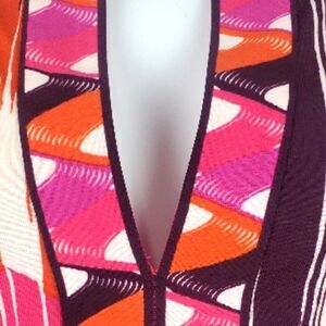 BCBG Maxazria Psychedelic Mod Shift Dress Jewel Toned Midi V-neck Tunic Top