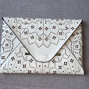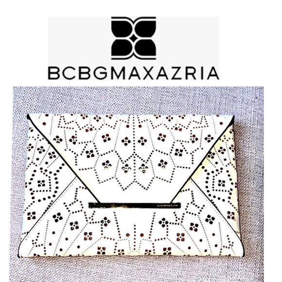 BCBG MAXAZRIA WHITE HOLLOW OUT ENVELOPE CLUTCH