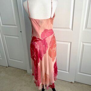 BCBG Max Asria Pink Layered Flowy Floral Spaghetti Strap Maxi Dress 12