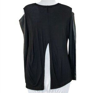 BCBG Max Azaria Judon Faux-Leather Cut Out Sleeve Black Top Back Slit XXS NWOT