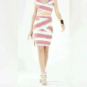 BCBG Max Azaria Pavel fitted bodycon skirt. White, clay & blue. Beautifully made heavy weight stretchy fabric. Size small. Waist measures 24” & skirt is 21” long.