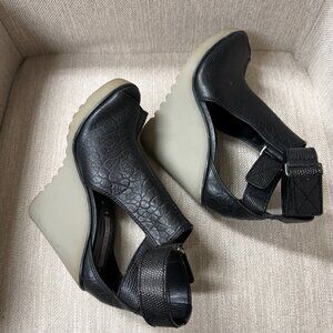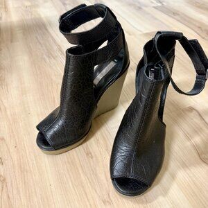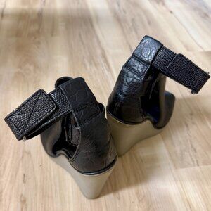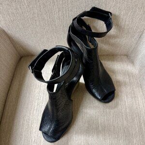 BCBG Max Azaria extured Black Leather double strap Peep Toe Ankle Boots