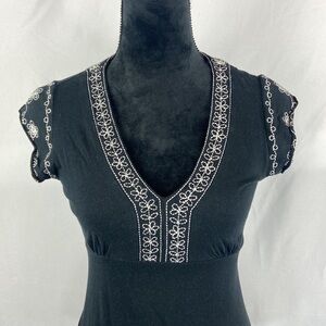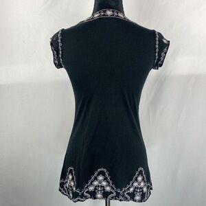 BCBG Max Azria 100% Cotton Black Tunic with Embroidered White Flower Detail